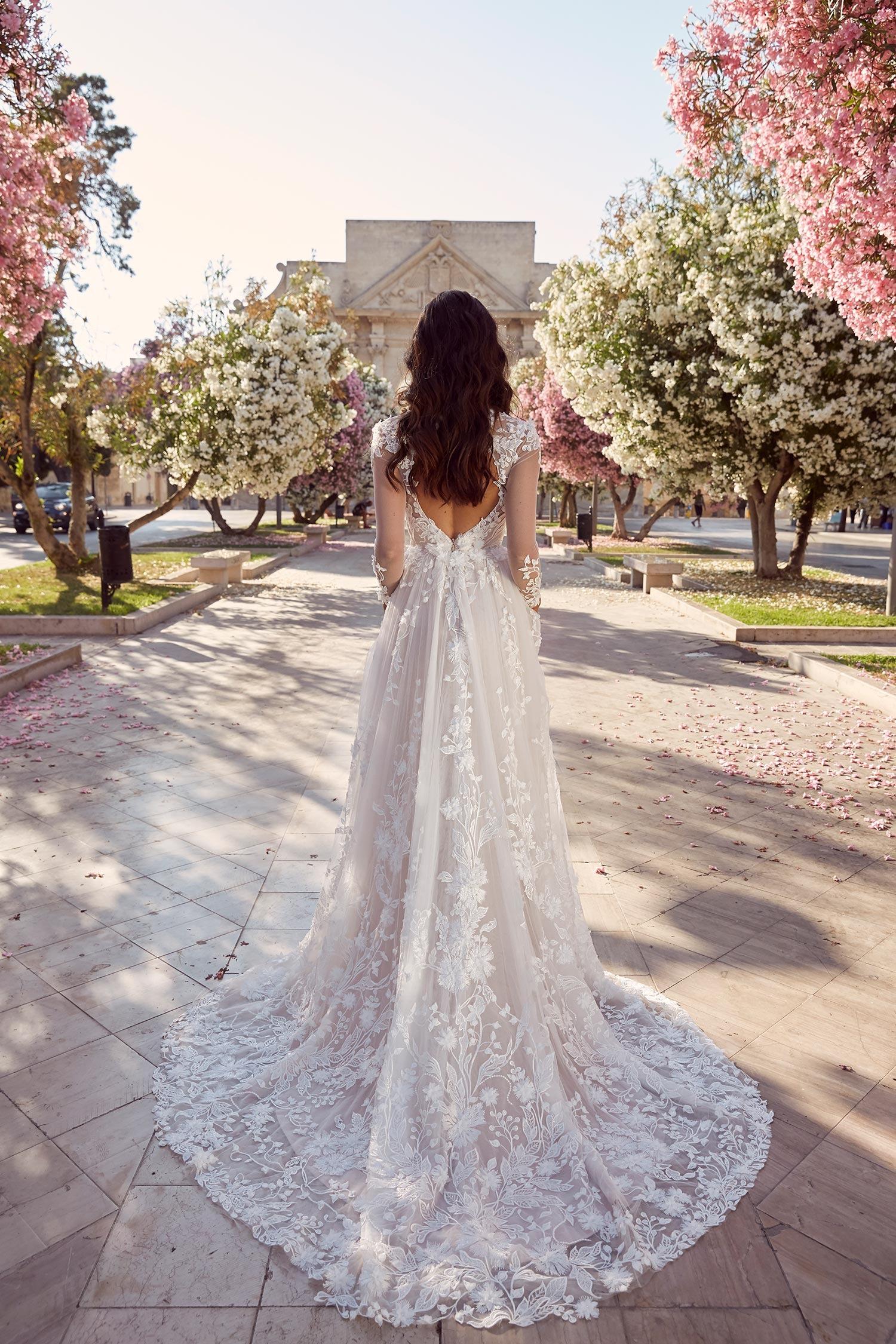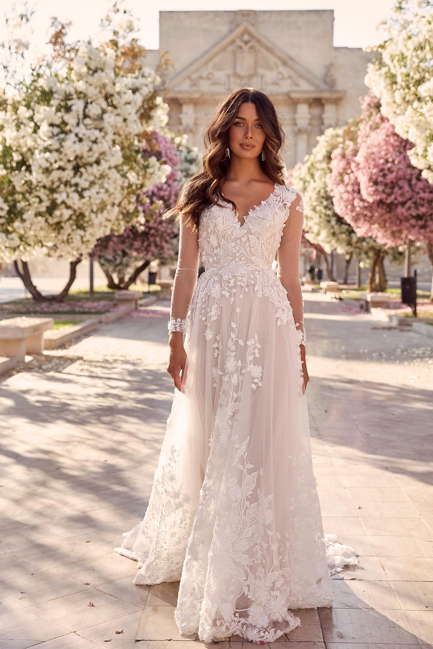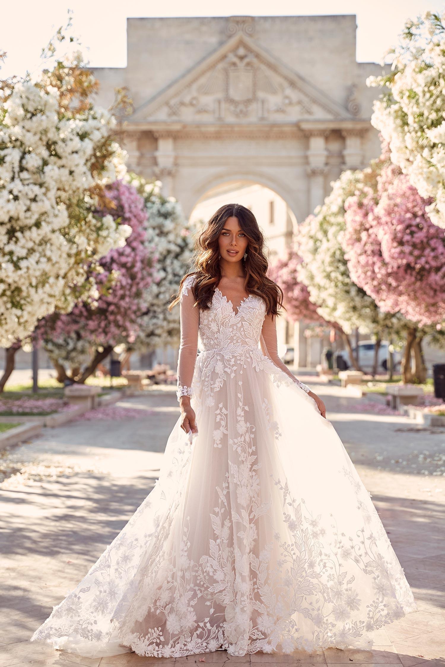 Aライン 花柄刺繍がかわいい プリンセスになれるウェディングドレス