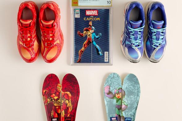 Kith×マーベル×カプコンとアシックスのスニーカー、アイアンマンやロックマン着想の配色で