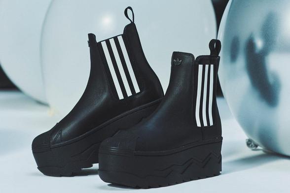 アディダス オリジナルス×アトモス ピンク「スーパースター」厚底ブーツ、レザーアッパーで