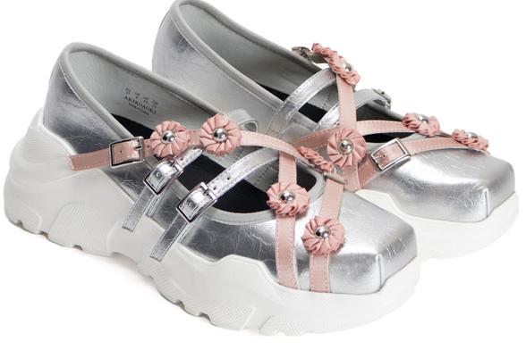 アキコアオキ“花々&スタッズ”を装飾したバレエ風シューズ、スリートレジャーズとコラボ