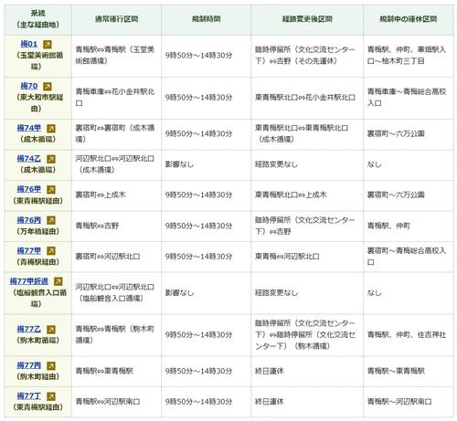 都営バス、12月7日の奥多摩渓谷駅伝に伴う交通規制で経路変更。梅77丙/丁は終日運休