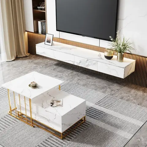 大理石調の壁掛けテレビボード サイドボード テレビ台収納 リビングデザイン 注文住宅アイデア