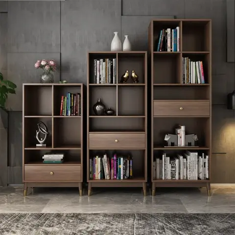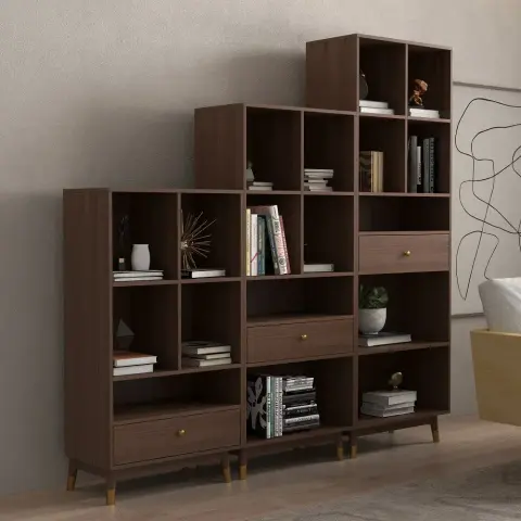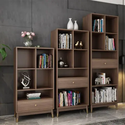 オープンタイプのモダン収納棚キャビネット(引き出し付き) 本棚 花瓶 オブジェ展示用ラック ブラウン ワードローブ