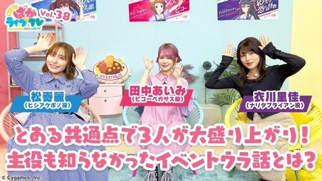 そこそこぱかライブTV Vol.38不定期配信の番組「そこそこぱかライブTV Vol.38」!「ぱかライブTV」とは雰囲気を変えて、ウマ娘のキャストの皆さんが “そこそこ” なトークをゆるりとお届けします!今回はそこそこぱかライブTV初出走の松嵜麗さん、田中あいみさんと初MCの衣川里佳さんがそこそこウラ話をお届け!それぞれが演じるウマ娘の話や「そこそこ勝負メシな話」、「そこそこみつけちゃった♡話」など、“そこそこ”なトークをゆるりとお送りします!放送日時:2024年10月11日(金)19:00~予定出走者:衣川 里佳(ナリタブライアン役)松嵜 麗(ヒシアケボノ役)田中 あいみ(ビコーペガサス役)「ウマ娘 プリティーダービー」公式X(Twitter):https://x.com/uma_musu「ウマ娘 プリティーダービー」公式サイト:https://umamusume.jp/© Cygames, Inc.