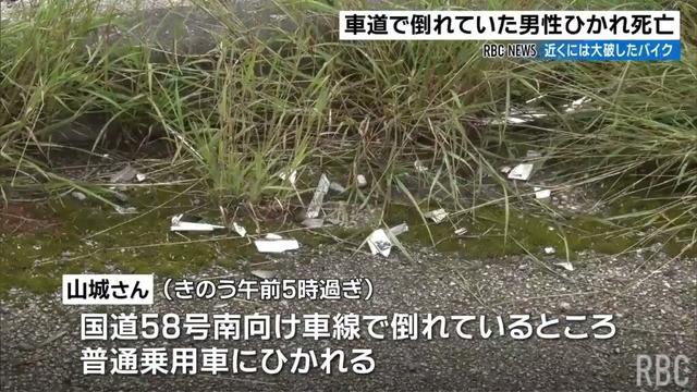 車道に倒れていた男性が車にひかれその後死亡 バイクで転倒か 恩納村安富祖の国道