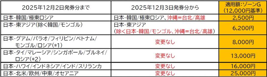 JTA那覇~桃園線、燃油サーチャージは「日本~韓国/極東ロシア」と同区分に。12月からの適用額は2500円