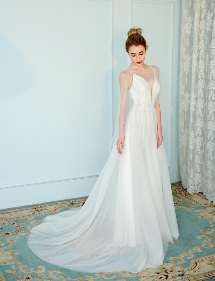 スレンダーライン バックレスチュールドレス エレガントなフォトウエディング ウェディングドレス