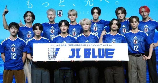「JFA・アディダス『サッカー日本代表 2026』キャンペーン共同発表会」が10日、都内で行われ、 JO1 と INI の選抜メンバーが出席。サッカー日本代表「最高の景色を2026」オフィシャルアンバサダー「JI BLUE」に就任した。 この日、会見に出席し、アンバサダーに就任したのは 與那城奨 、 西洸人 、 白岩瑠姫 、 河野純喜 、 佐藤景瑚 、 田島将吾 、 高塚大夢 (※高=はしごだか)、 後藤威尊 、 川西拓実 、 金城碧海 、 佐野雄大 、 池崎理人 (※崎=たつさき)の12人。サッカー好きが結集された。