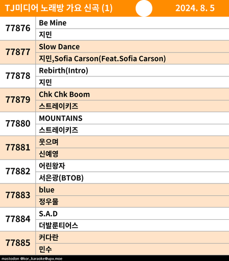 대한민국 노래방 신곡 알림 (TJ,금영)