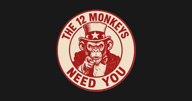 “12 Monkeys Need You” – dystopian parody T-shirt 🐒⏳
