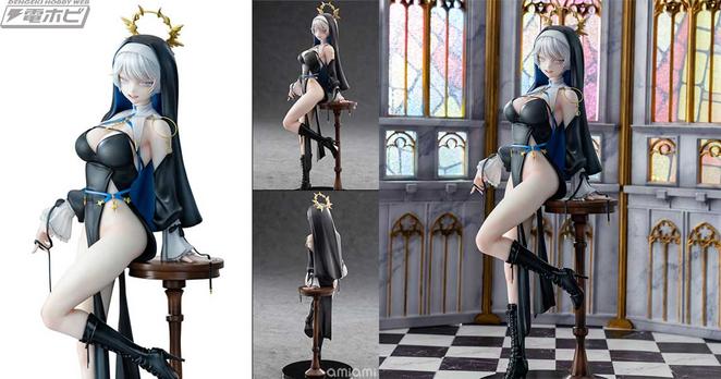 お久しぶり氏イラストの挑発的な表情が印象的な「シスター アナスタシア」がKAWA DESIGNからフィギュア化!大聖堂 背景セットやアクリルブロックが付属する豪華版も展開、あみあみ予約受付中!