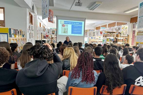 A Olga Iglésias esteve com várias turmas da Escola Básica do 2º e 3º Ciclos Fragata do Tejo, na Moita, para lhes falar sobre igualdade de género antes e depois do 25 de Abril.