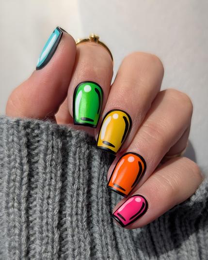 #manicure #nails #pressonnails #nailart #comicbooknails #nailpolish #indiepolish #neonandchillcollab #chinaglaze #786cosmetics #crackedpolish