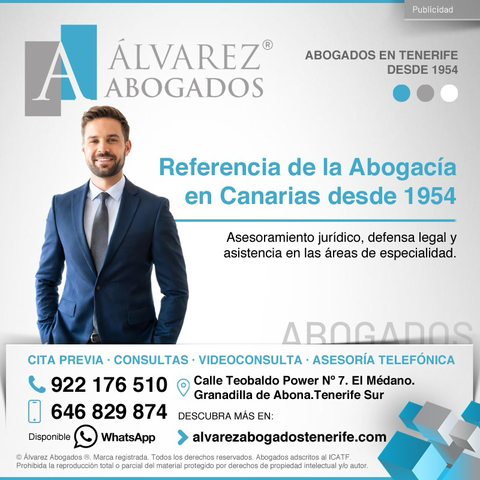 Referencia de la Abogacía en Canarias. El Derecho en Tenerife tiene nombre, Álvarez Abogados ®. Desde 1954 asesoramiento jurídico, defensa legal y asistencia legal por Alvarez Abogados Tenerife en Tenerife Sur y Norte, y toda Canarias.