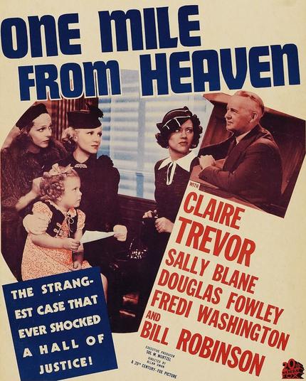 “One Mile From Heaven” (20th Century-Fox, 1937) — Claire Trevor is the nominal star, but her character is too slimy to sympathize with. The real protagonists are Fredi Washington and Bill Robinson. A very unusual feature in its handling of race relations.