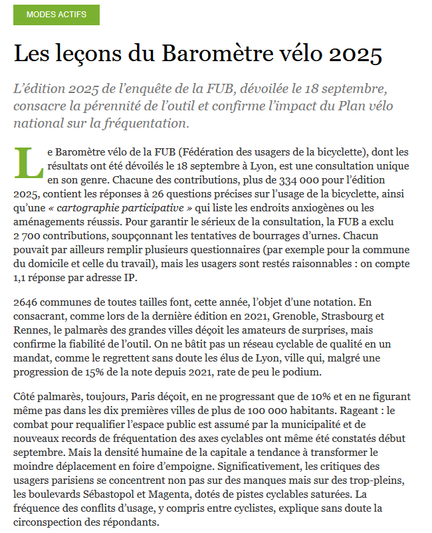 Dans Mobilettre: les enseignements du Baromètre #velo 2025.