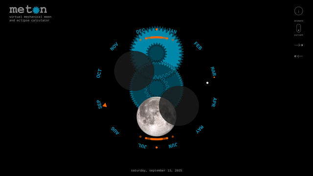 Web app "Meton II" (updated today): The virtual mechanism calculates lunar phases and predicts both lunar and solar eclipses with millennial precision.