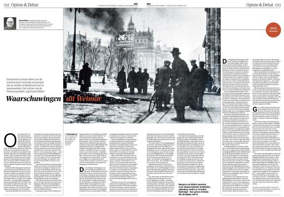 Autocratie is een keuze De lessen van Weimar zijn nog altijd huiveringwekkend actueel. Hitler kwam niet aan de macht omdat hij een meerderheid van de kiezers overtuigde, maar omdat traditionele partijen meenden dat ze hem konden gebruiken of beteugelen. Het waren de conservatieve partijen (CDA, opletten!) die zich pragmatisch opstelden: beter meeregeren met extremisten dan politieke invloed verliezen. Het was de liberale elite (VVD, opletten!) die liever haar energie stak in het fel afzetten tegen links dan in het verdedigen van de democratische orde. Het resultaat was catastrofaal. Door hun eigen berekening en hun kortzichtige vijanddenken boden zij de extremisten precies de legitimiteit die ze nodig hadden. De les is duidelijk: autocratie ontstaat niet vanzelf, ze wordt mogelijk gemaakt door gevestigde partijen die denken dat meebuigen slimmer is dan weerstand bieden. Vandaag klinkt dezelfde verleiding: pragmatisme als excuus om de deur naar ondemocratische politiek op een kier te zetten. Of het nu gaat om conservatieven die zich ‘verantwoordelijk’ noemen terwijl ze extremisten ruimte geven, of liberalen die hun pijlen uitsluitend richten op links en zo de andere flank normaliseren. Wie dit pad kiest, kiest niet voor stabiliteit, maar voor het ondermijnen van de democratie. Autocratie is geen natuurkracht. Het is geen onafwendbaar noodlot. Het is een keuze. Een keuze van partijen die uit machtsbehoud of kortzichtig opportunisme bereid zijn de fundamenten van de democratische rechtsstaat te verzwakken. De geschiedenis laat zien hoe die keuze afloopt.