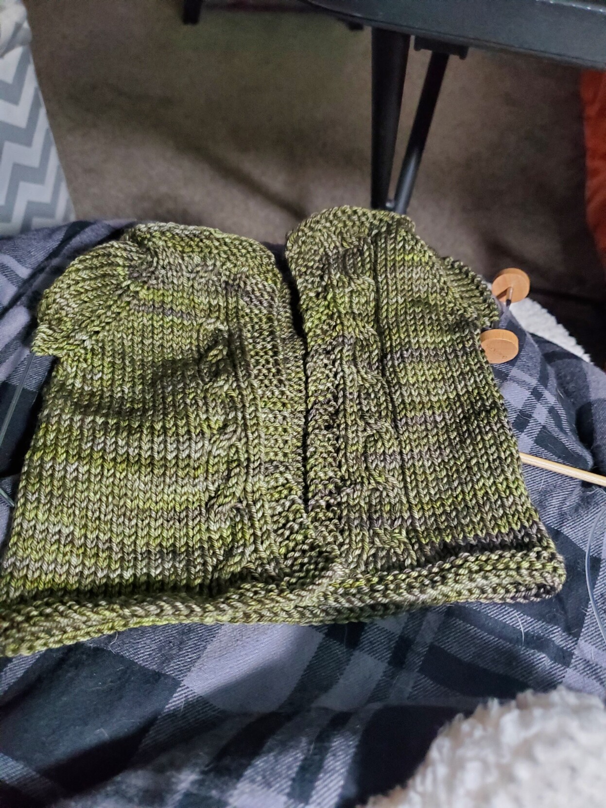 The third item in this gift, which I blocked a week ago, stretched nearly two sizes. So it was an emergency re-knit this past week, and yes it is very plain.