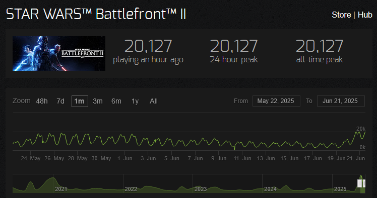 Wow, #StarWars #Battlefront2 is only $4 on Steam right now. 25K players atm too, it's # 41 on the charts. Neat