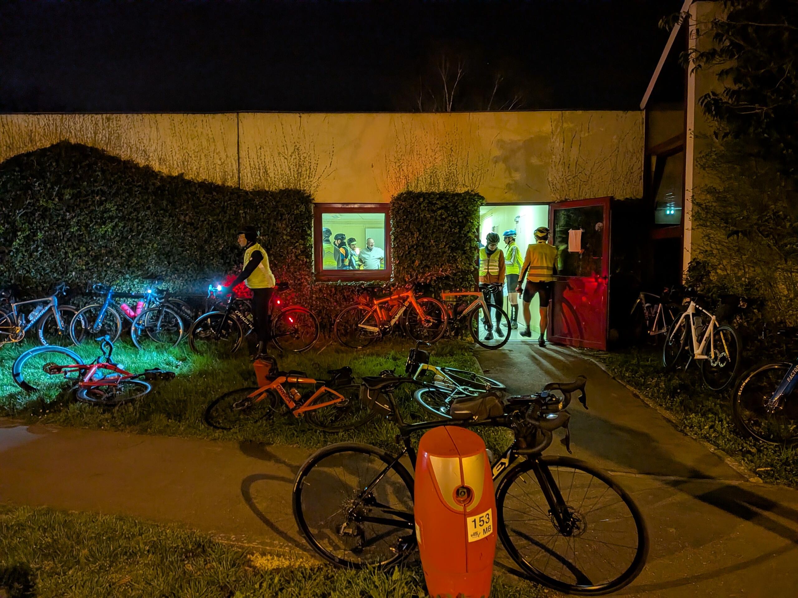 Aller, plus que 13km, cela va être une promenade. Juste un vélotaf en fait. Je tire mes compagnons dans la côte de Jouars-Pontchartrain, j’ai la grande forme (et mal au c** aussi) mais je suis super content. La nuit commence à tomber. Je fouille mes poches en roulant pour ressortir ma chasuble et là, gros choc à l’avant en étant sur la piste cyclable et instantanément roue avant à plat.