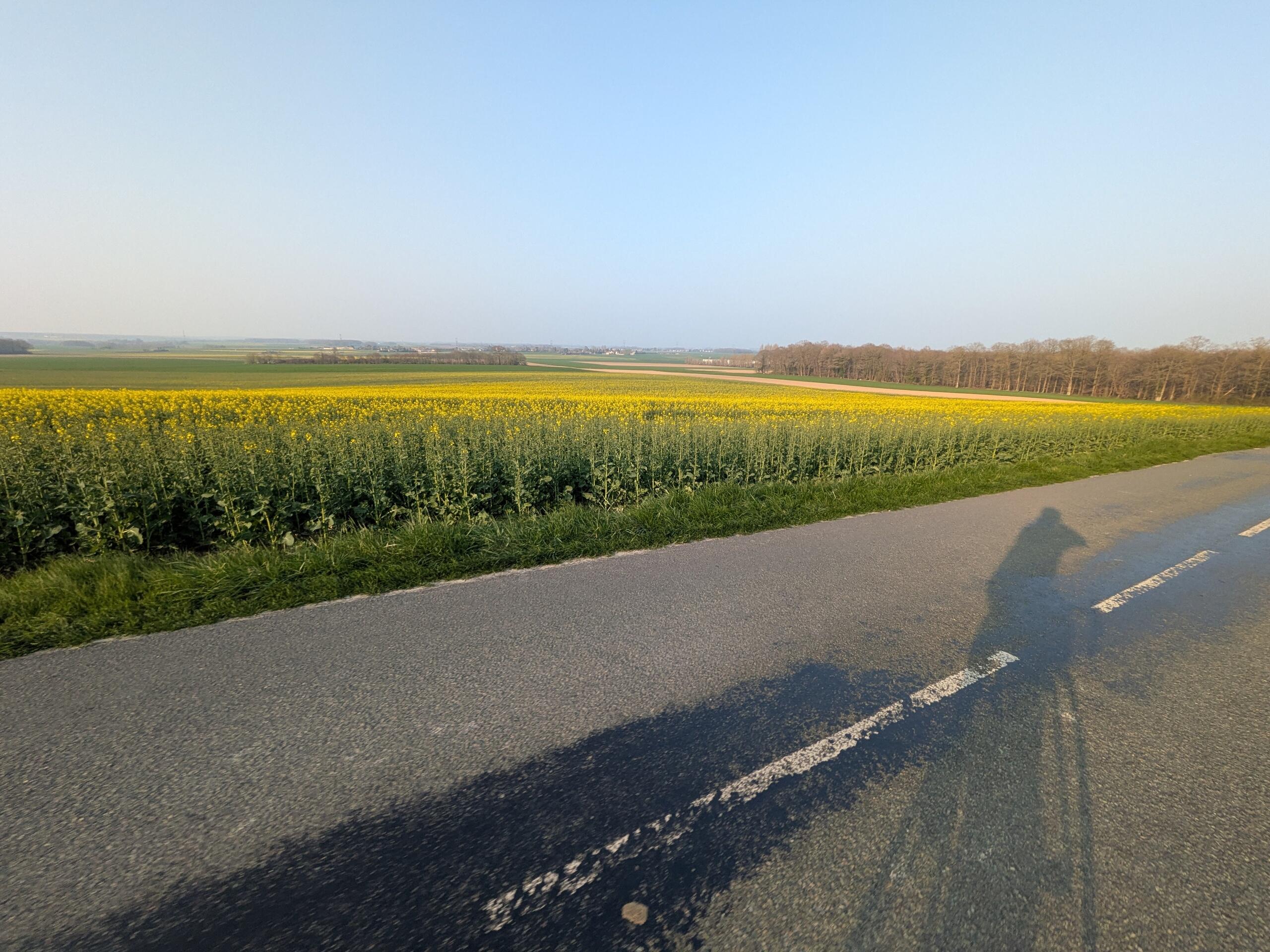 Il est environ 11h20 et je n’en suis pas encore à la moitié. C’est long 300km !!! Toutefois je suis sur les bases d’un 13h de roulage soit 14h au total atteignable. Cela me motive beaucoup. Un petit sandwich devant un beau château et je repars. Pas plus de 15 minutes de pause pour ne pas se refroidir.