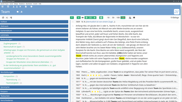Zu den wichtigsten Arbeitsmitteln der Wörterbucherstellung gehört traditionell der #Zettelkasten: In ihm werden die #Beleg​|e gesammelt, auf deren Grundlage die #Bedeutungsgeschichte eines Wortes erarbeitet wird. Der Zettelkasten von #WortgeschichteDigital ist die App #ZettelsTraum: https://adw-goe.de/forschung/weitere-forschungsprojekte/wortgeschichte-digital-teilprojekt-im-zdl/zettels-traum/. In die App können Belege aus dem #DTA, den Korpora des @dwds.wisskomm.social und vielen anderen Quellen automatisch importiert werden.