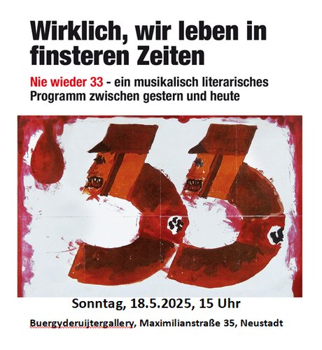 #18052025 #1933 #2025 #BerndKöhler #BertBrecht #BettinaFranke #EstherBejarano #ewo2 #HannsEisler #JoachimRomeis #KlausMann #KonstantinWecker #Neustadt #RoseAusländer #SolidarischerFrühlingNeustadt2025 #TheodorKramer
