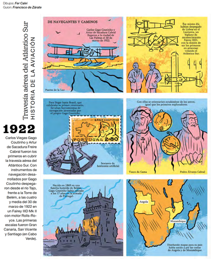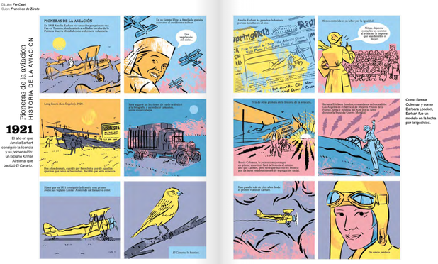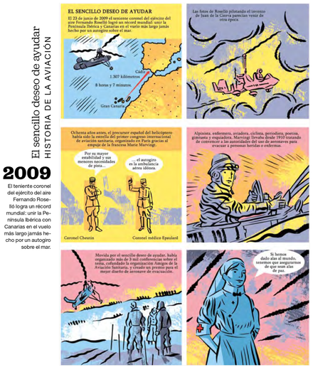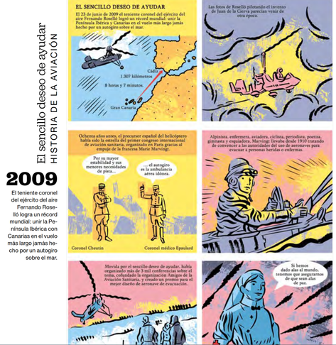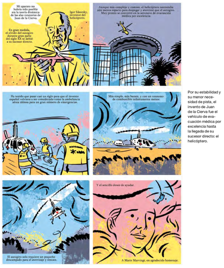 La historieta que Fer Calvi y yo hicimos en homenaje al autogiro y a la ilustre aviadora francesa Marie Marvingt, para la revista de la aerolínea canaria BINTER