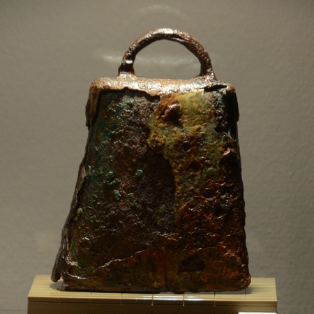 De eigenlijke expositie toont mooie voorwerpen en het prettige is dat het nu eens geen monumentale zaken zijn, zoals in de musea van Keulen of Trier, maar de bescheiden gebruiksvoorwerpen van het provinciale platteland. Er zijn leuke verbanden: een van de muntjes toont bijvoorbeeld een gebouw dat je herkent van de maquette van het Forum Romanum. Ik was wel gecharmeerd van de koebel uit Kontich die hiernaast staat afgebeeld. Van dezelfde opgraving kwam een grauwe, handgevormde pot waarover ik morgen zal schrijven. Opvallendste voorwerp is de bekisting van een Romeinse waterput uit Wijnegem.