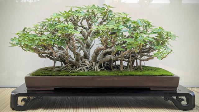my favourite tree overall was Nigel's dwarf Schefflera (umbrella tree), which is styled like an enormous banyan fig. this tree was *big*โphotos don't give an accurate impression of the size. looking down at the tangled roots was amazing.