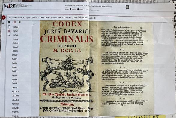 That’s a book from 1756 you won’t find in the catalogues. It’s art from Hito Steyerl, and featured this weekend in the German SZ Magazin. The real Codex Maximilianeus Bavaricus Civilis exists, but without #AI robots on the title page next to an entry about “Leibeigenschaft”