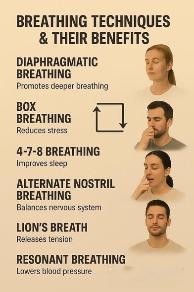 From diaphragmatic breathing to lion’s breath, these techniques can help reduce stress, improve sleep, and boost your well-being. Which one will you try today?
