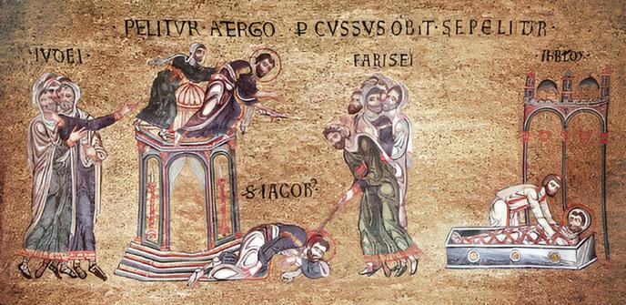 De dood van Jakobus de Rechtvaardige (San Marco, Venetië)Het leiderschap van de sicariërs, een stroming binnen het jodendom, was in handen van de afstammelingen van Judas de Galileeër; als leiders van de farizeeën komen we de familie van Gamaliël tegen; je zou van de op Jezus van Nazaret teruggaande stroming dus eveneens verwachten dat zijn verwanten er grote invloed hadden. En zo is het inderdaad. Het Nieuwe Testament noemt Jezus’ broer Jakobus als een leider van de vroege christelijke gemeenschap . Mogelijk oefende ook een broer Judas gezag uit. Op gezag van de tweede-eeuwse auteur Hegesippos weten we dat ook Judas’ kleinzonen nog een rol speelden. Ik blogde daar al eens over en ik laat het nu rusten.