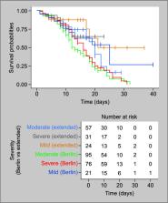 <sub>2</sub> ratio. Multiple pairwise comparison reported that hazard of death was lower in patients