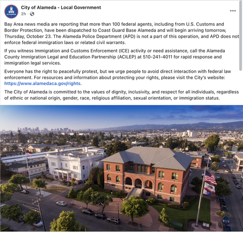Watch out, Alameda. And I guess the whole Bay Area. ICE and other feds incoming at scale.