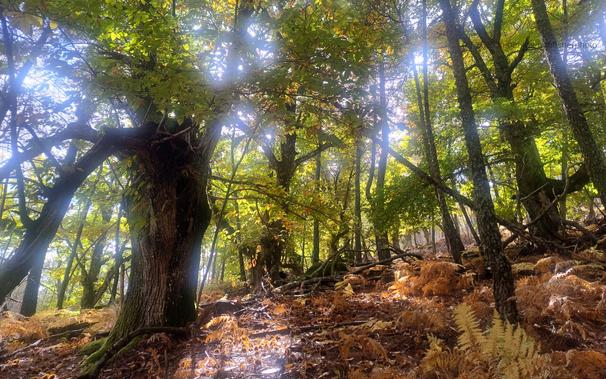 Brillos de una mañana de Otoño, por el castañar de la garganta de Majalobos.