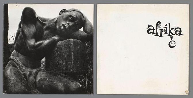 Links: Monument voor karavaandragers, Mpozo, Belgisch-Congo (tegenwoordig Congo-Kinshasa); rechts: witte bladzijde met door Van der Elsken zelf gecalligrafeerde hoofdstuktitel 'Afrika/Africa', Ed van der Elsken, 1959