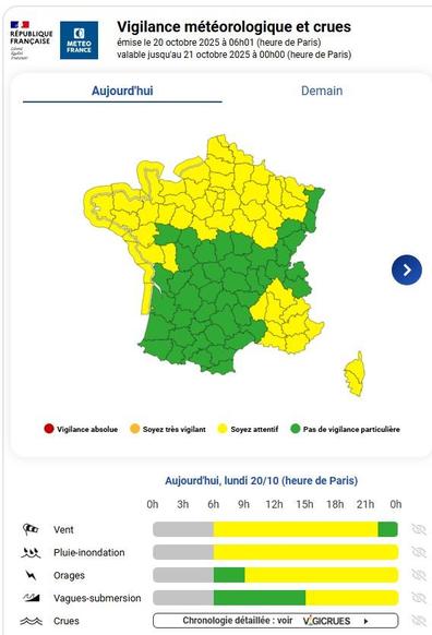 Les pluies se poursuivent ce lundi, avec une vigilance jaune en cours sur de nombreux départements.