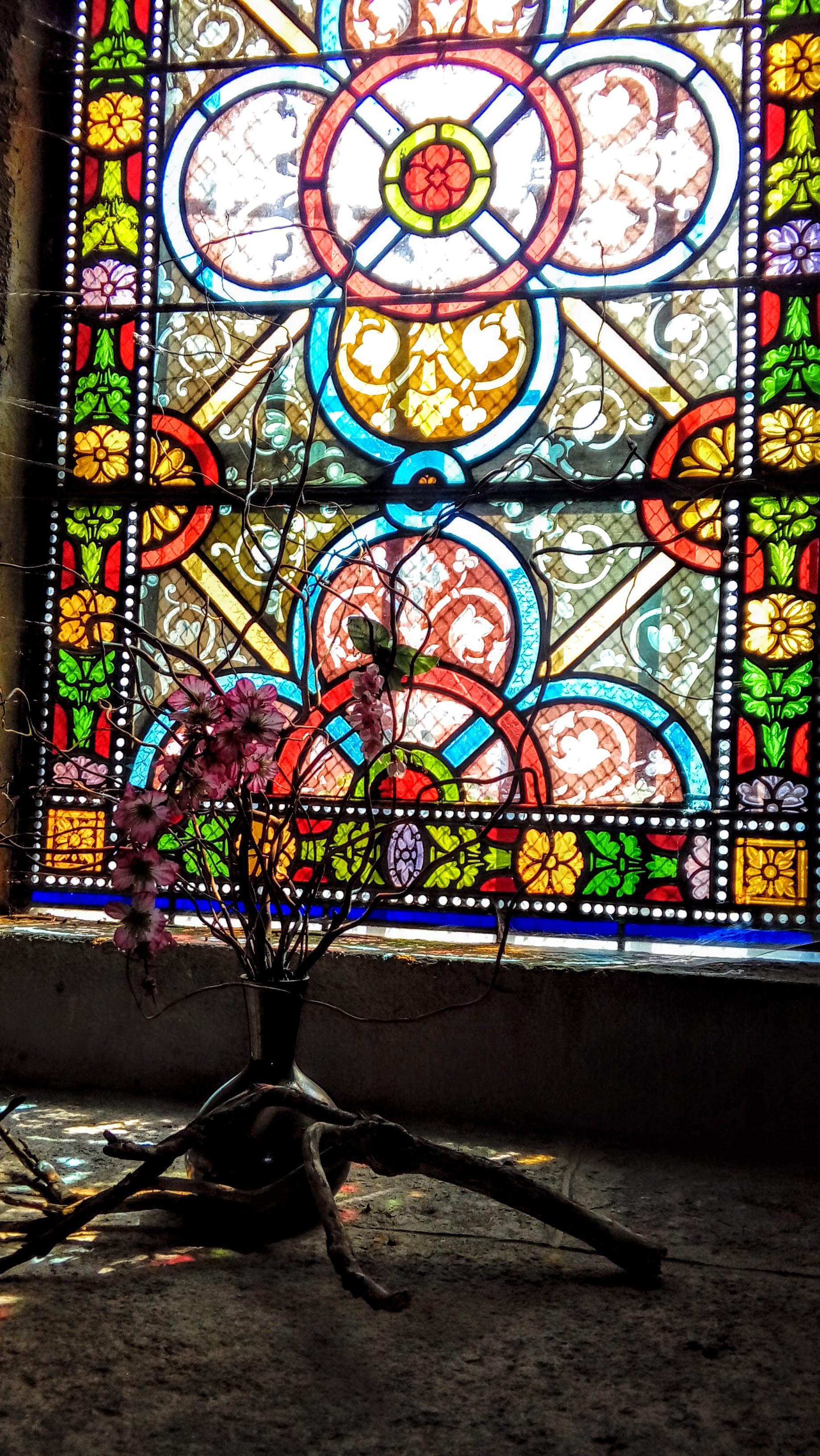 When ich Orte besuche, gehe ich gerne zu den religiösen Anbetungsstätten, besonders zu Kirchen. Dieses mal war an einem Ort ein eher ungewöhnliches Motiv auf dem Kirchenfenster (3. Bild).