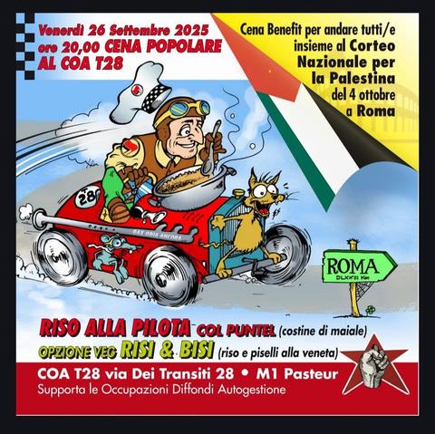 🍽️ A seguire, cena sociale (offerta minima 10€). Menù veg, al bar sarà disponibile la Gaza Cola