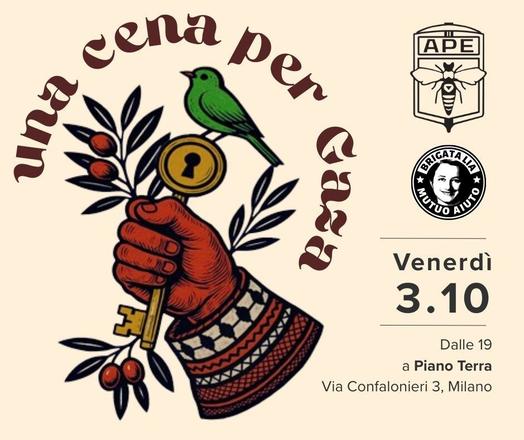 #MutuoAiuto #PianoTerra #CenaSociale #cibo #convivialità #gaza #palestina #ApeMilano #benefit #brigatalia