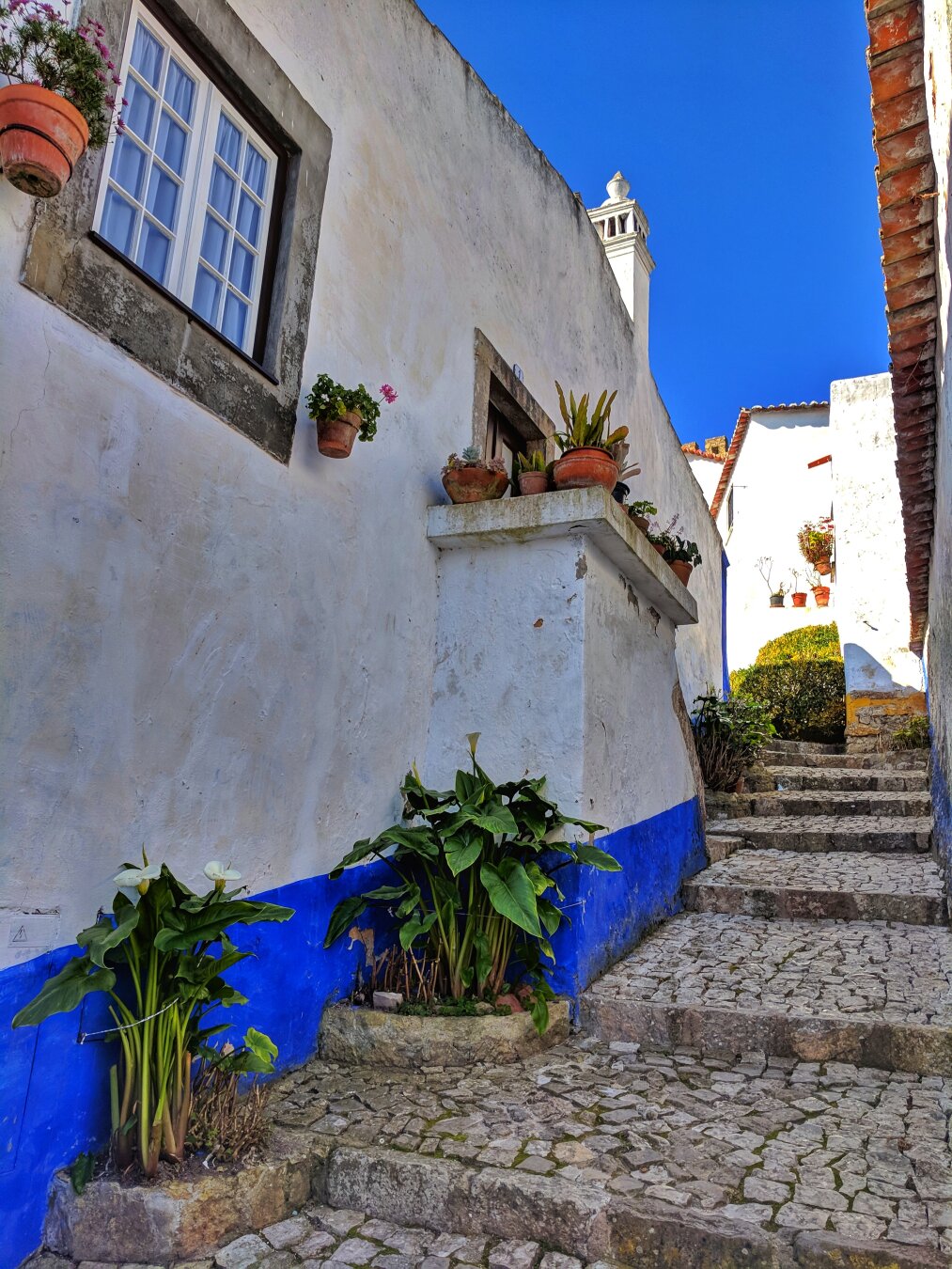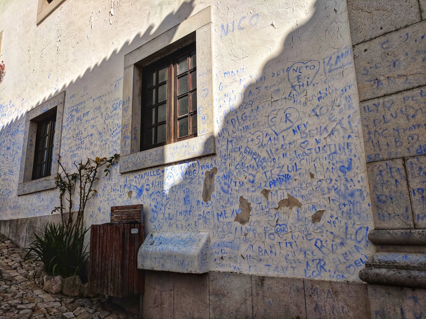 Another memory of Óbidos and its beautiful blue bases. The paint seems to wear off easily and some tourists use it to leave their marks on the houses.