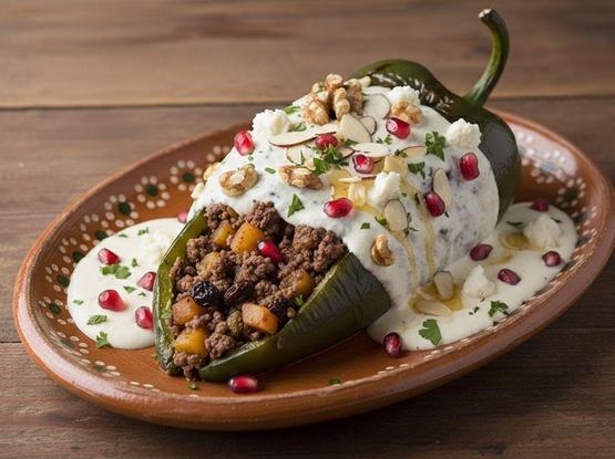 • Este platillo tradicional mexicano es muy representativo por sus colores que simulan la bandera nacional y tiene un sabor dulce y cremoso, complementado con la fruta y las nueces del relleno.daisybrand+2