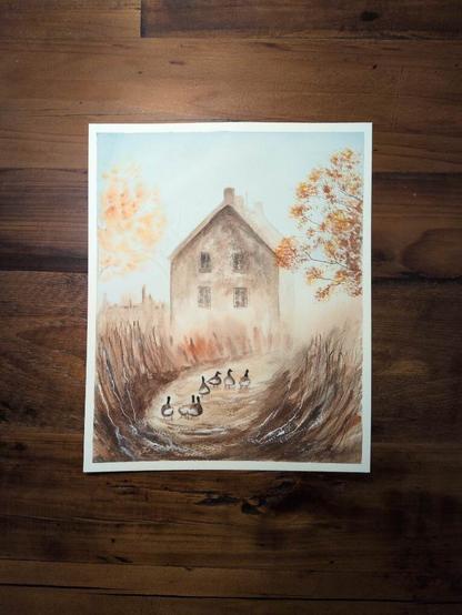 #watercolor #watercolour #aquarell #aquarelle #aquarela #acquerello #acuarela #painting #art #countyside #cottage #geese #misty #autumn