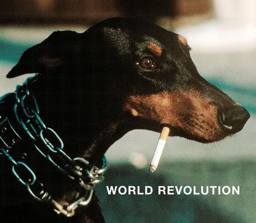 Dobermann with a cigarette in its mouth