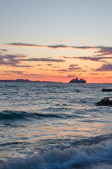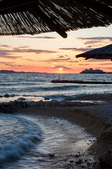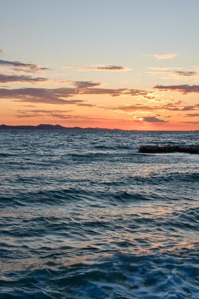 Západ slunce z Chorvatska místo Bibinje, první čtrnáct dní v červenci.