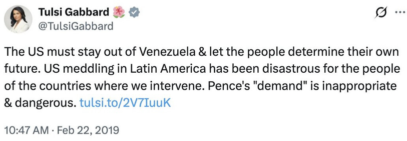 I always knew #TulsiGabbard was a phony. Pretend #leftist but now Trump’s intelligence chief.