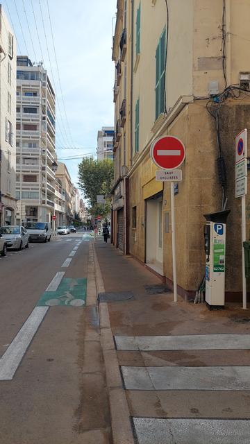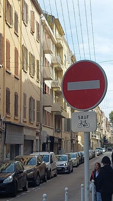 Rue Jaurès : petite bonne nouvelle. Le DSC existait déjà (bande), la rue a été refaite… et il manquait les panonceaux « sauf vélos ». C’est corrigé. ✅