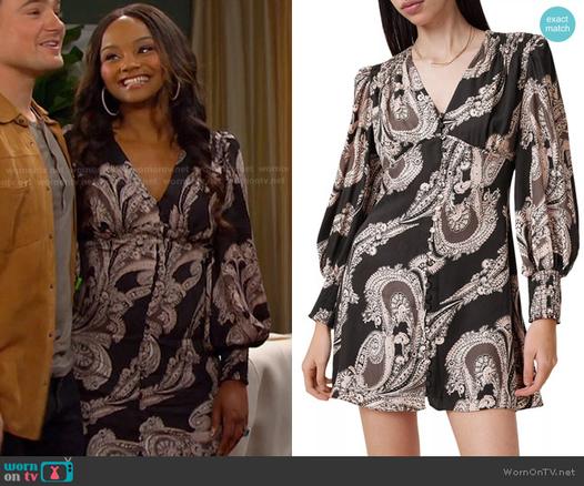 Chanel’s black paisley mini dress on Days of our Lives